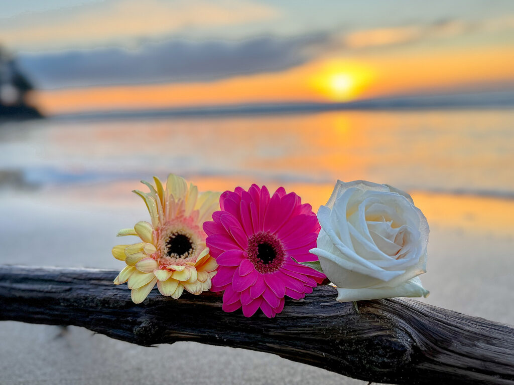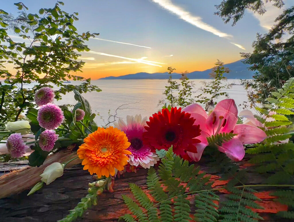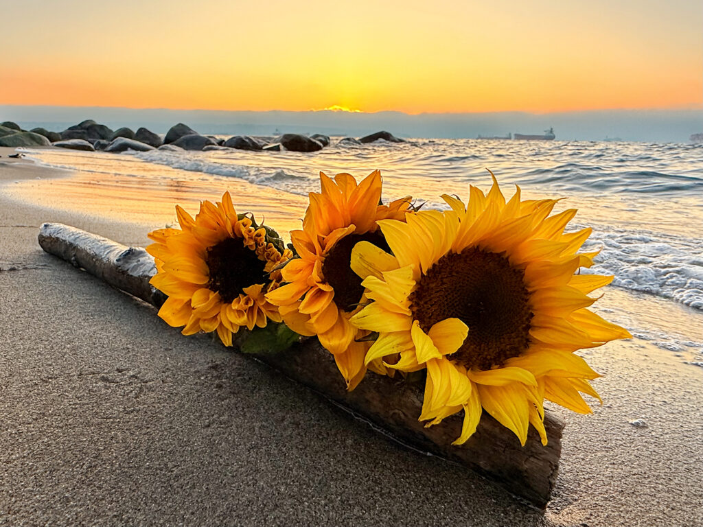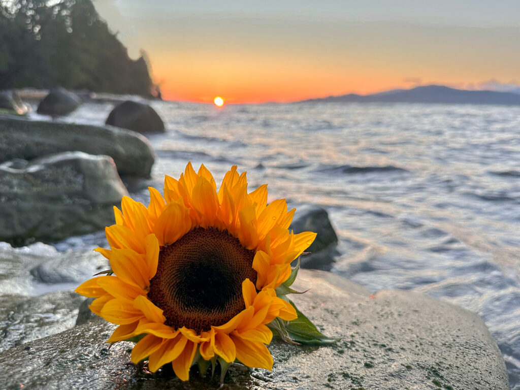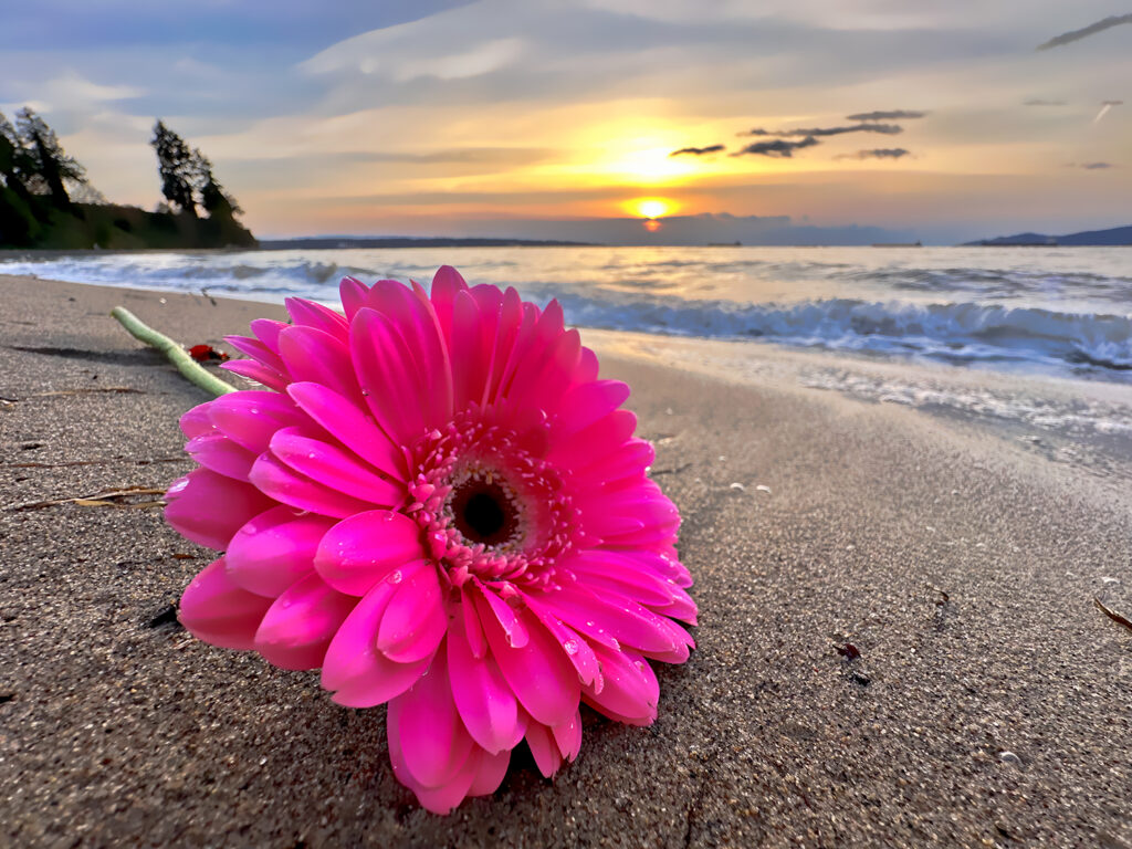 Petals resting where the day exhales — a quiet meeting of bloom and sunset.