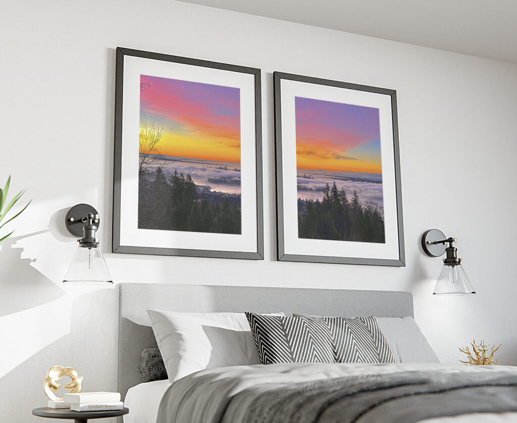 A sunset or sunrise carries a quiet kind of magic — light that softens, warms, and transforms the moment it touches. Bringing that glow into your home is an invitation to slow down and reconnect with calm. Each print captures Vancouver’s shifting skies — the golden hush of evening, the gentle rise of dawn — moments of light and emotion preserved in time.